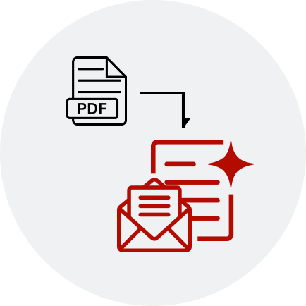PDFの内容からメールやレポート等の下書きを自動生成。資料作成の手間を省き、情報の二次活用をスムーズにします。